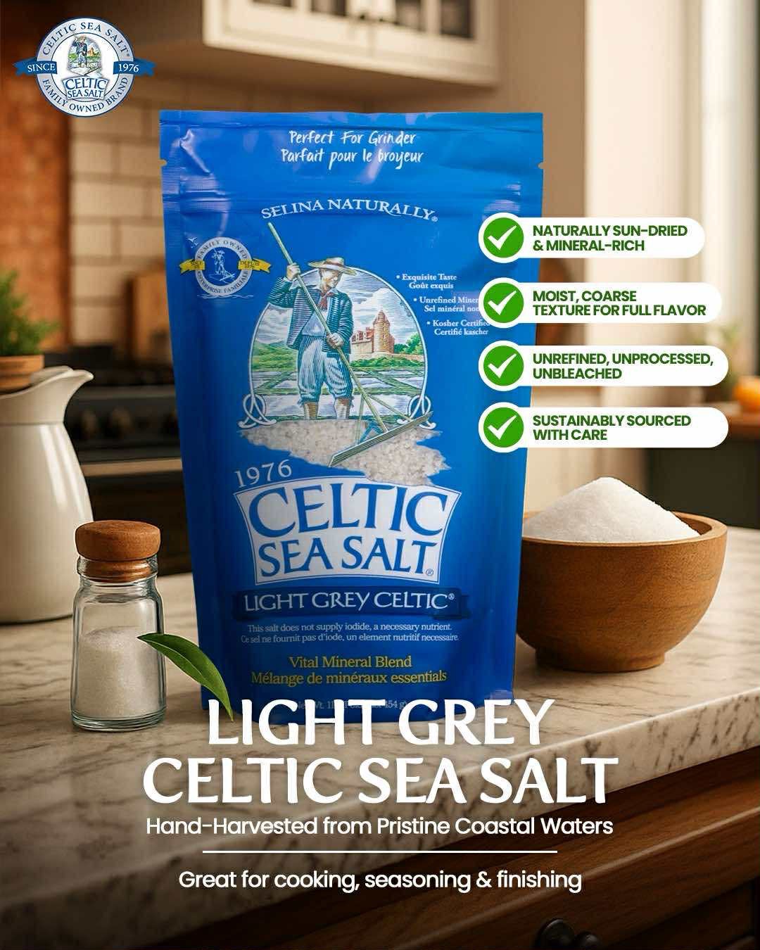 Celtic Sea Salt® is unrefined and hand-harvested, preserving natural minerals that are often lost in processed salt.